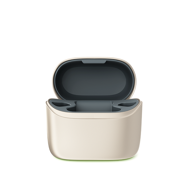 Il caricatore è estremamente intuitivo: non devi preoccuparti di accendere o spegnere gli apparecchi. Basta inserirli nei rispettivi alloggiamenti e si spegneranno automaticamente. Quando li rimuovi dal caricatore, si riaccendono in modo automatico.